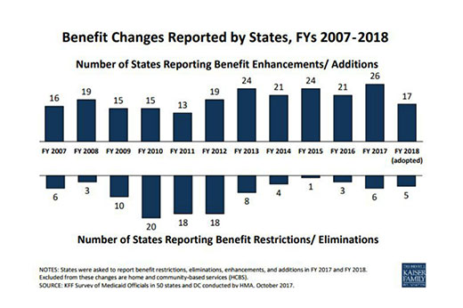 While congressional Republicans and President Donald Trump have been seeking major cuts in federal funding of Medicaid, 26 states this year expanded or enhanced benefits and at least 17 plan to do so next year, according to a recent report.