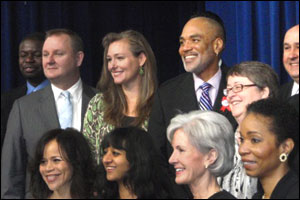 With the appointment of 24 new members to the Presidential Advisory Council on HIV/AIDS (PACHA), the Obama administration took one more step toward fulfilling its promise for a national strategy on HIV/AIDS, The council, which advises the White House on its HIV/AIDS policy, will provide input for the national HIV/AIDS strategy. The diverse group of appointees is made up of researchers, service providers and community leaders, including people living with HIV. They were sworn in on February 2 in the Eisenhower Executive Office Building, next to the White House. "We often speak about HIV/AIDS as if it's only going on somewhere else, but we face a serious HIV/AIDS epidemic in America," said President Barack Obama in a released statement. "Today I'm pleased to have a new group of experts joining PACHA, and I look forward to hearing from the council about our continued efforts to prevent the spread of HIV infections in the United States, and to provide care and treatment to people living with HIV/AIDS around the world." Voices from Black and Brown communities will be heard on PACHA. Dr. Helene D. Gayle, who heads the humanitarian group CARE USA, was named as PACHA's chair back in August 2009. Among PACHA's new members are the Rev. Calvin O. Butts III of the Abyssinian Baptist Church in Harlem, Malika Saada Saar of the Rebecca Project for Human Rights, Douglas M. Brooks of the Justice Resource Institute and actress Rosie Perez. The Black AIDS Institute is represented on PACHA by executive director Phill Wilson and board member A. Cornelius Baker of the National Black Gay Men's Advocacy Coalition. Each PACHA member can serve for up to four years. More information about the council's membership and staff can be found at here. Here are the new PACHA members: Chair Membership Praveen Basaviah, HIV/AIDS advocate; Bay Area, Calif. Dawn Averitt Bridge, founder and president of the board, the Well Project; Nellysford, Va. Douglas M. Brooks, vice president for health services, Justice Resource Institute; Boston. Calvin O. Butts III, D.Min., pastor, Abyssinian Baptist Church; New York, N.Y. Humberto Cruz, director, AIDS Institute, New York State Department of Health; New York, N.Y. Ernest Darkoh, M.D., M.P.H., chairman, BroadReach Healthcare, LLC; Washington, D.C. Kevin Frost, chief executive officer, the Foundation for AIDS Research (amfAR); New York, N.Y. Patricia Garcia, M.D., associate professor, department of obstetrics and gynecology, Northwestern University; Chicago. Robert Greenwald, managing attorney, the WilmerHale Legal Services Center, Harvard Law School; Jamaica Plain, Mass. Kathie Hiers, chief executive officer, AIDS Alabama; Birmingham, Ala. David R. Holtgrave, Ph.D., professor and chair, department of health, behavior and society, Johns Hopkins Bloomberg School of Public Health; Baltimore. Michael A. Horberg, M.D., director, HIV/AIDS, Kaiser Permanente; Oakland, Calif. Ejay Jack, graduate assistant, multicultural affairs; the University of Nebraska at Omaha. Jack Jackson Jr., principal, the Agassiz Group, LLC; Phoenix. Naina Khanna, director of policy and community organizing, Women Organized to Respond to Life-threatening Disease (WORLD); Oakland, Calif. Jim Yong Kim, M.D., Ph.D., president, Dartmouth College, Hanover, N.H. Anita McBride, former assistant to President George W. Bush and chief of staff to First Lady Laura
