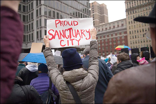 Protesters assail Trump's plan to punish so-called "sanctuary cities"